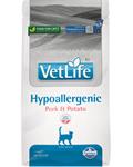 Farmina Vet Life Hypoallergenic Pork & Potato je kompletné diétne krmivo pre mačky na zníženie neznášanlivosti voči zložkám a živinám krmív; podpora funkcie kože pri dermatózach a nadmernej strate srsti.
